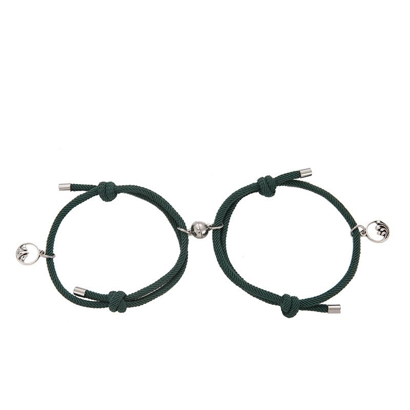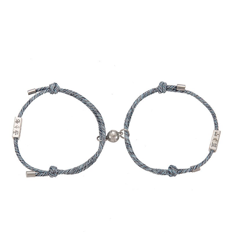 The couple’s braided bracelet uses a magnetic buckle design. Once they are close together, they will be connected to each other.